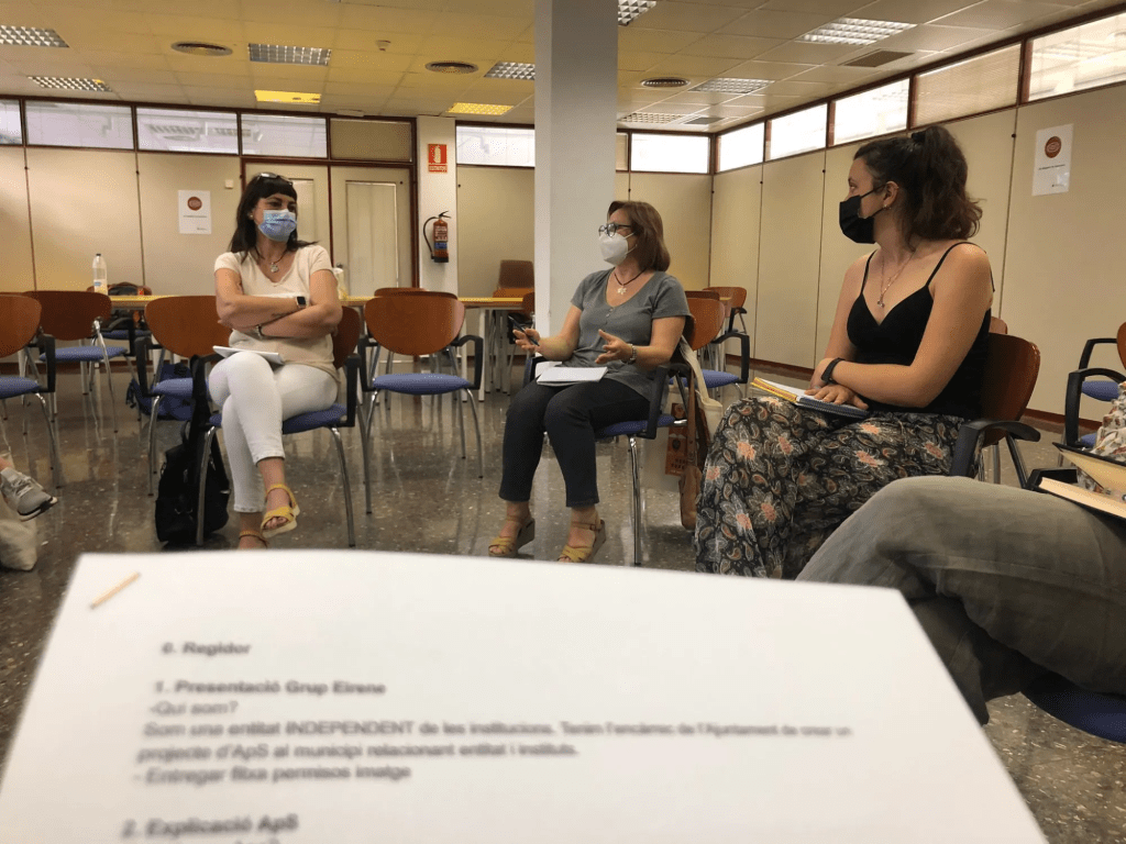 Seguint aquests propòsits, des del Grup Eirene ens encarreguem de contactar amb les entitats i els centres educatius explicant el projecte, els oferim una formació teòrica i els ajudem a la construcció de projectes d’ApS. A més, facilitem tots els recursos pedagògics als docents, a través de l’elaboració d’una guia didàctica, on es detalla totes les fases del procés de sensibilització de l’alumnat. D’aquesta manera, establim les bases per la instauració dels ApS a un municipi determinat.