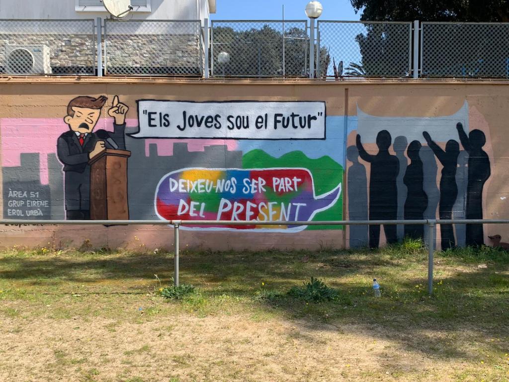 - La segona part, va ser facilitada i acompanyada per les associacions Grup Eirene i Erol Urbà, va consistir en un procés de creació artística de l’interès de les participants, concretament la realització d’un mural reivindicatiu al pati de l’Espai Jove Àrea 51 de Vallromanes. En aquesta segona fase, les participants –a través de la reflexió i el debat conjunt i partint dels aprenentatges, interessos i sensibilitats detectats i desenvolupats en la primera part del projecte— van determinar quin missatge volien comunicar mitjançant l’expressió artística, com ho farien i des de quina perspectiva i ho van portar a terme.