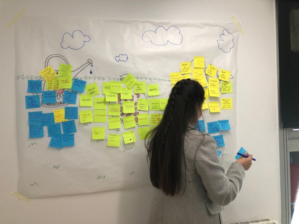 - La primera part, a càrrec del Grup Eirene va consistir en un procés d’aprenentatge i sensibilització que, mitjançant el joc i la reflexió, buscava detectar i desenvolupar els coneixements, interessos i sensibilitats de les joves. Aquesta etapa va servir per crear cohesió de grup i començar a proposar idees i temàtiques per l’acció de sensibilització final.