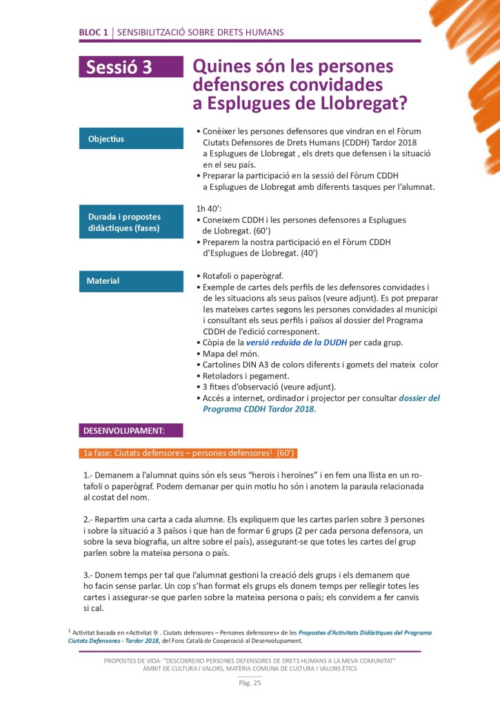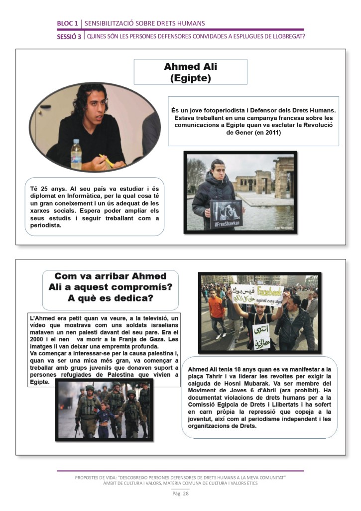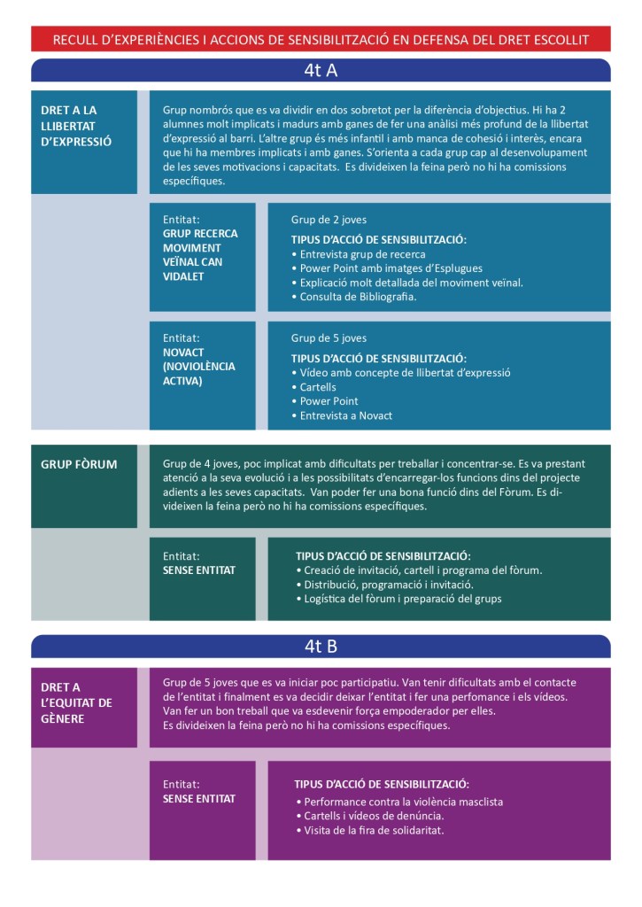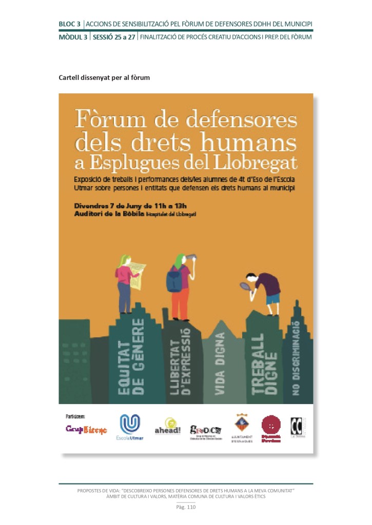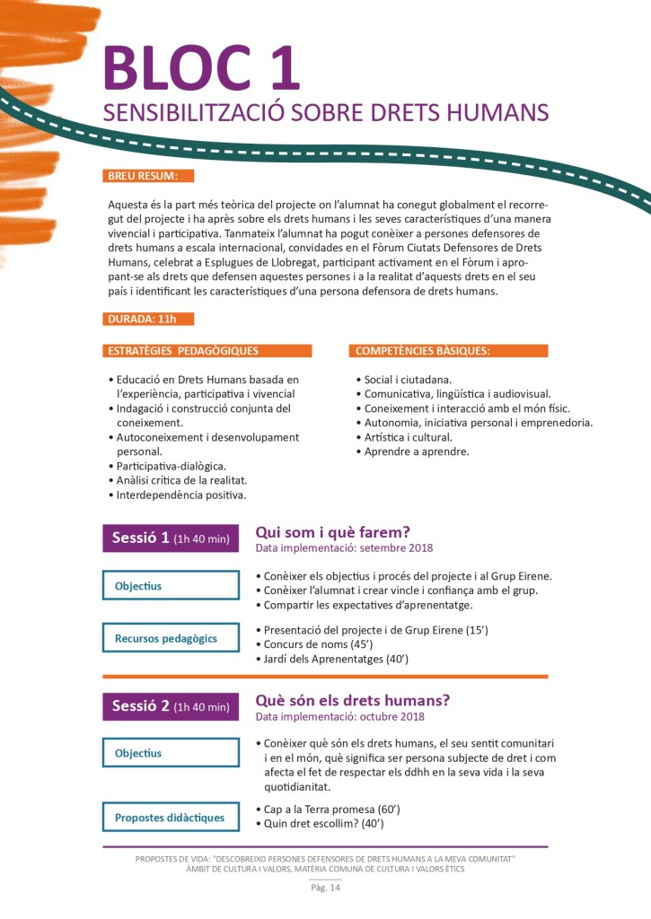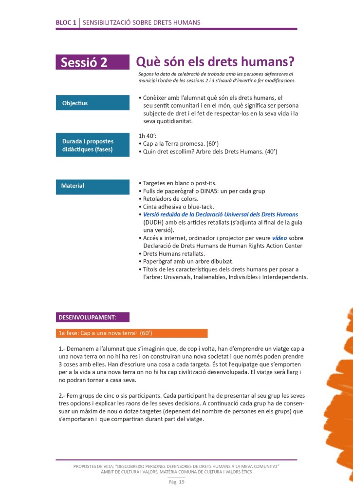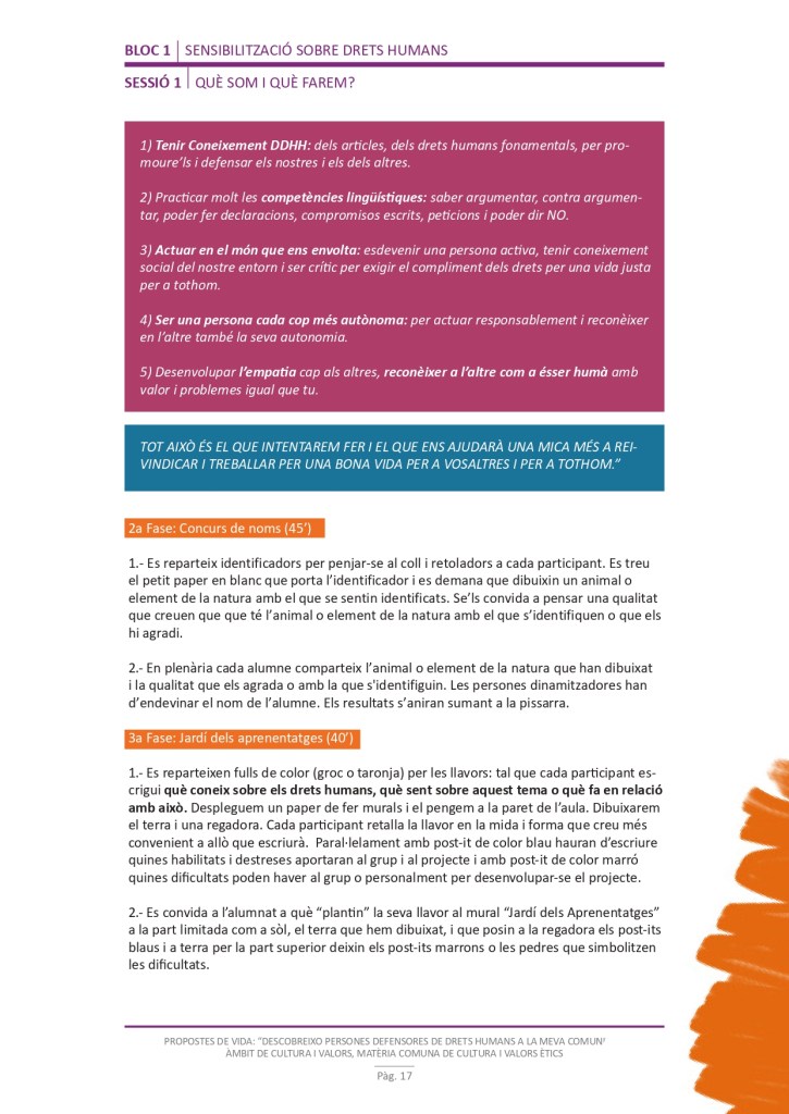 És un projecte d’aprenentatge i servei d’educació en drets humans que pretén endinsar als/les joves, d’una forma pràctica, en el coneixement i la importància de l’exercici d’aquests drets, així com en les accions que es generen per defensar-los en l’àmbit internacional i local. La intenció de tot aquest procés és la d’afavorir entre joves el coneixement social del seu entorn i del món per fomentar l’esperit crític i solidari que els impulsi a treballar i incorporar en la seva vida la consecució d’una vida digna per a tothom.