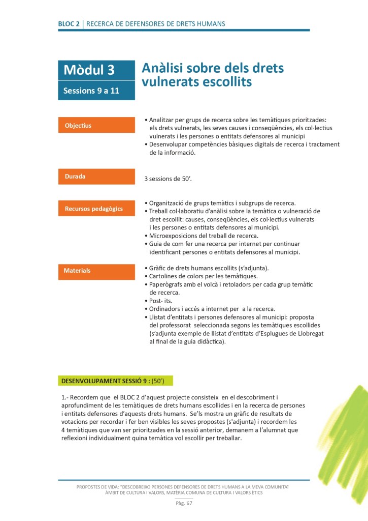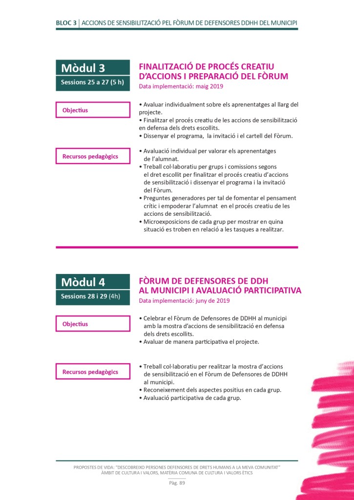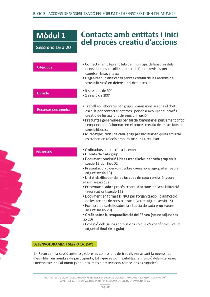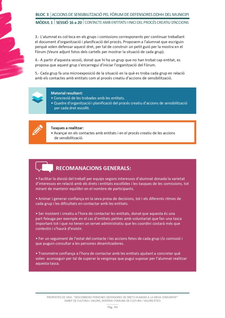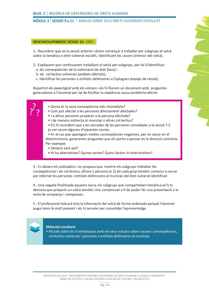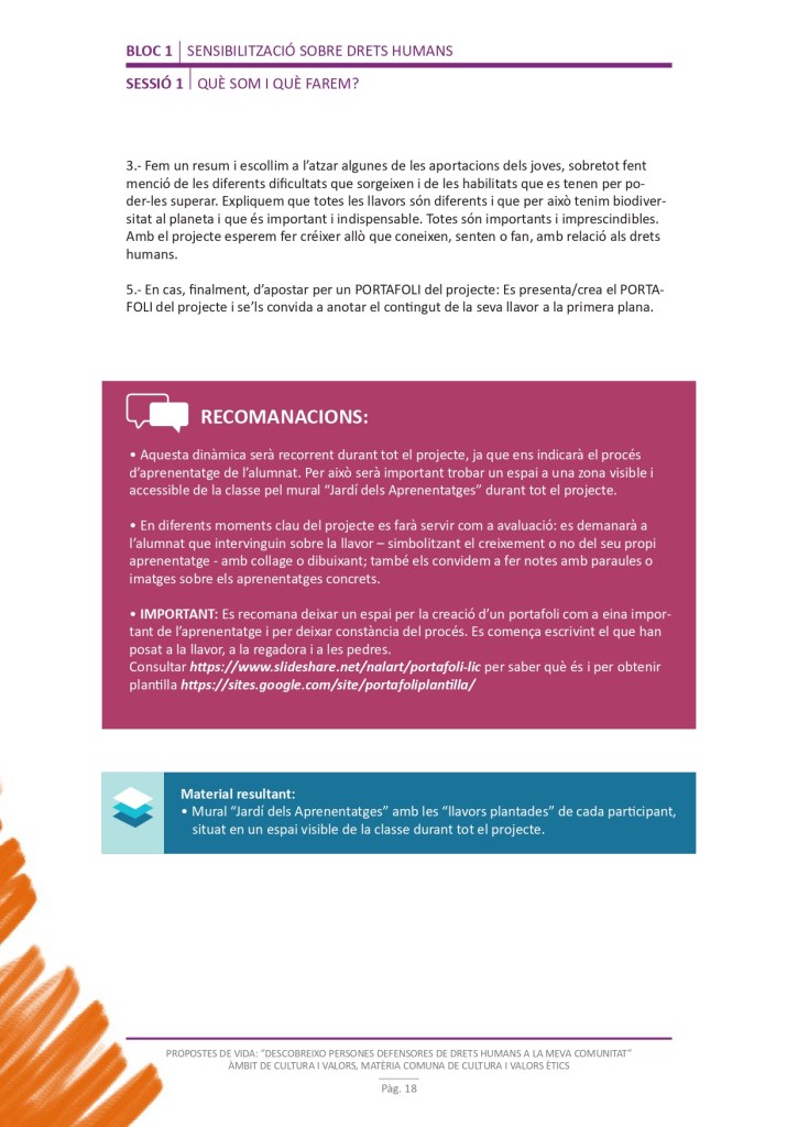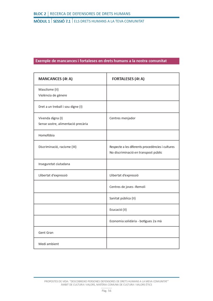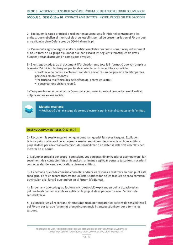 És un projecte d’aprenentatge i servei d’educació en drets humans que pretén endinsar als/les joves, d’una forma pràctica, en el coneixement i la importància de l’exercici d’aquests drets, així com en les accions que es generen per defensar-los en l’àmbit internacional i local. La intenció de tot aquest procés és la d’afavorir entre joves el coneixement social del seu entorn i del món per fomentar l’esperit crític i solidari que els impulsi a treballar i incorporar en la seva vida la consecució d’una vida digna per a tothom.