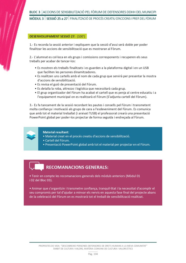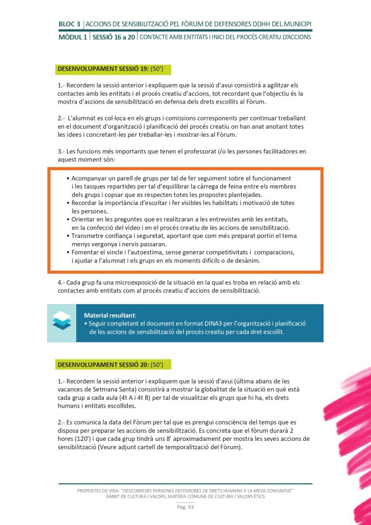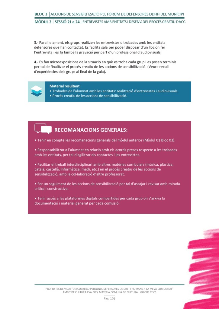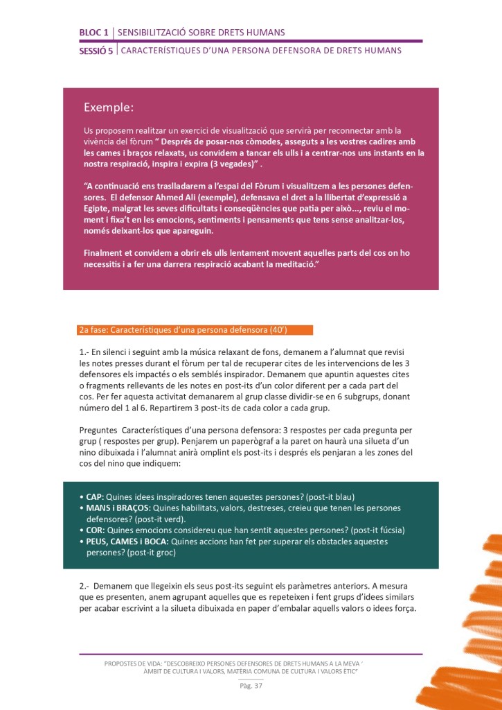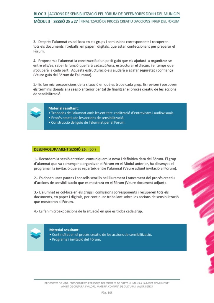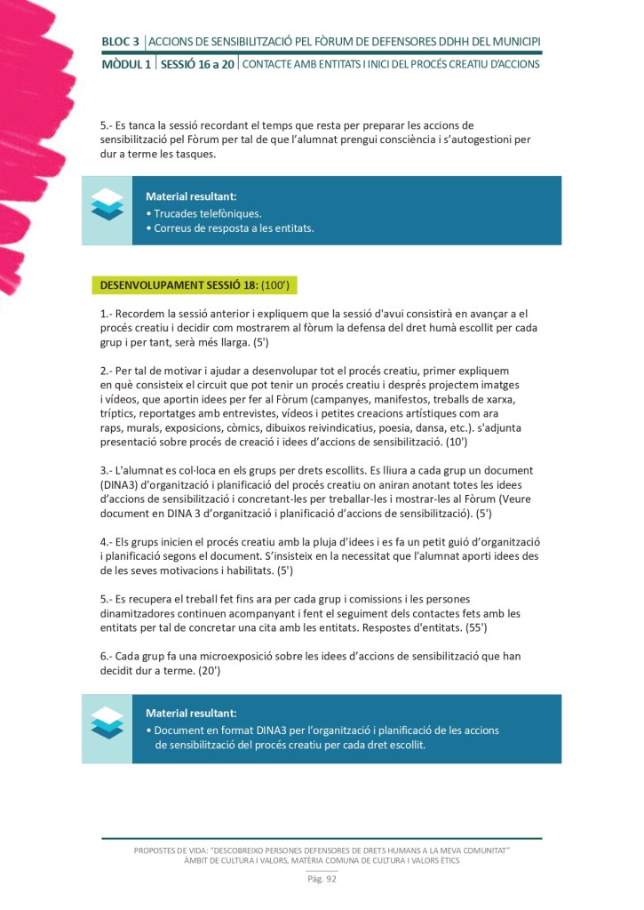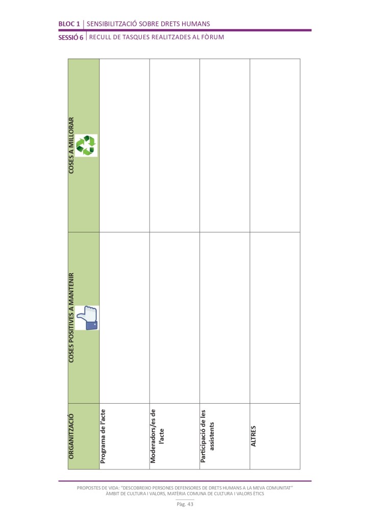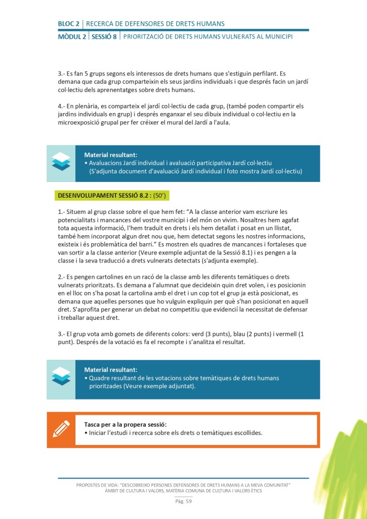 El propòsit del projecte és que els/les joves, després d’una prèvia formació pràctica, transversal participativa sobre els Drets Humans, puguin investigar i fer recerca sobre aquelles persones, entitats del municipi on viuen o de l’entorn més proper, que han pogut construir pau i justícia social. Després de la recerca per conèixer entitats i persones defensores, es proposarà la creació d’un Fòrum de DDHH on es mostri la feina que han fet i els testimonis d’aquestes persones defensores i pugui revertir-se en la seva comunitat.