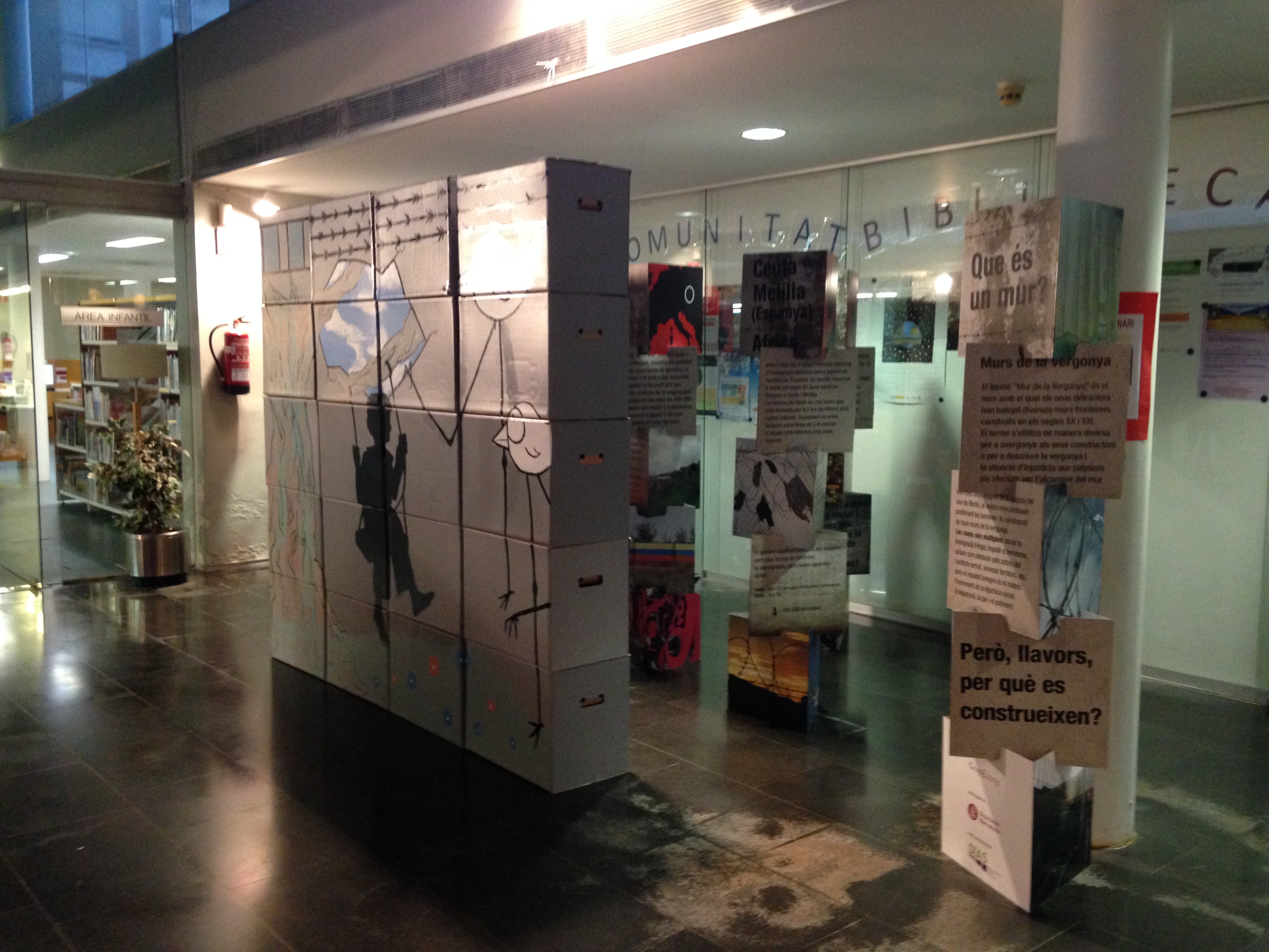 L’exposició “Els murs de la vergonya: derruïm murs, construïm pau” és una mostra itinerant que des del 2014 viatja pels diversos municipis de Catalunya de la mà dels Ajuntaments que l’han acollit als seus espais expositius, centres educatius, centres de joves, etc.